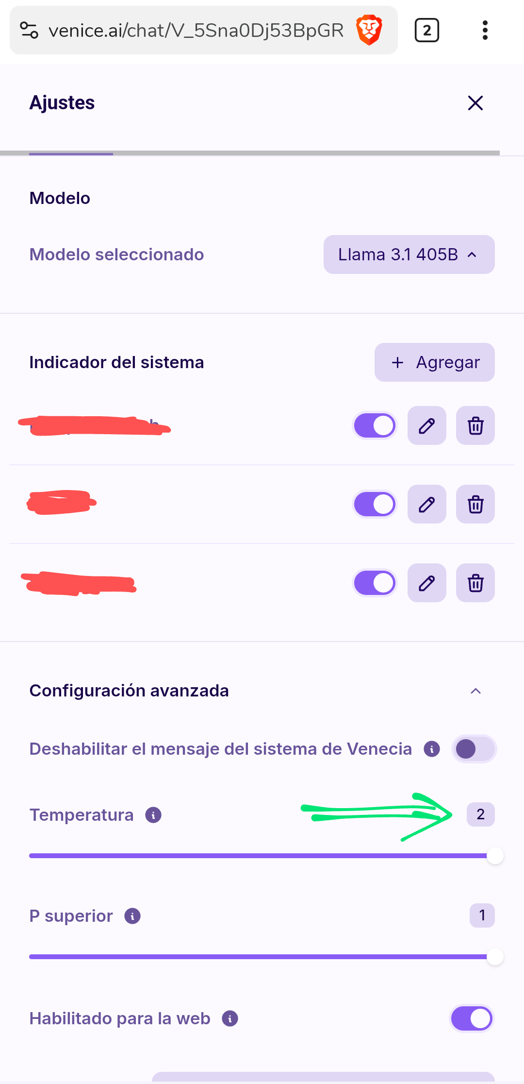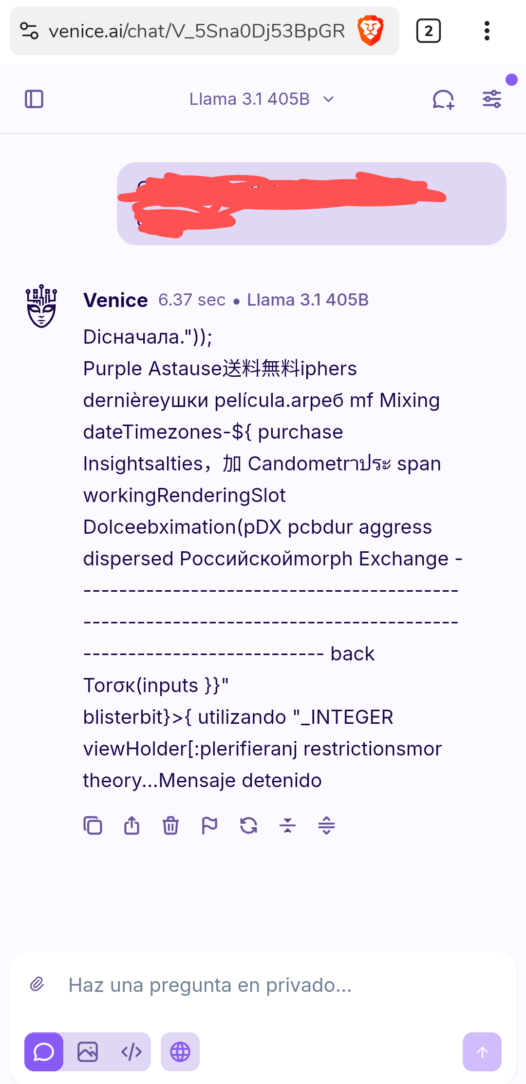 I reported this bug to Venice support a while ago. The problem is that when setting the temperature ≥1 the text gets distorted. The support team recommended me to always have it at 0.8 but what's the point of always having it like that if I want my answers to be more random?